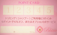 当店では、トリミング(シャンプー)をご利用してくださったお客様に、ポイントカードをお渡ししております。